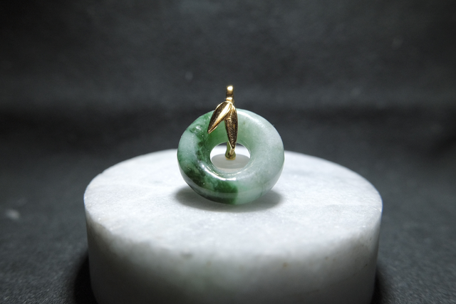 Le pendentif « Halo est un cercle parfait, sculpté dans un jade de type A non traité symbolisant l’éternité, l’harmonie et la protection.